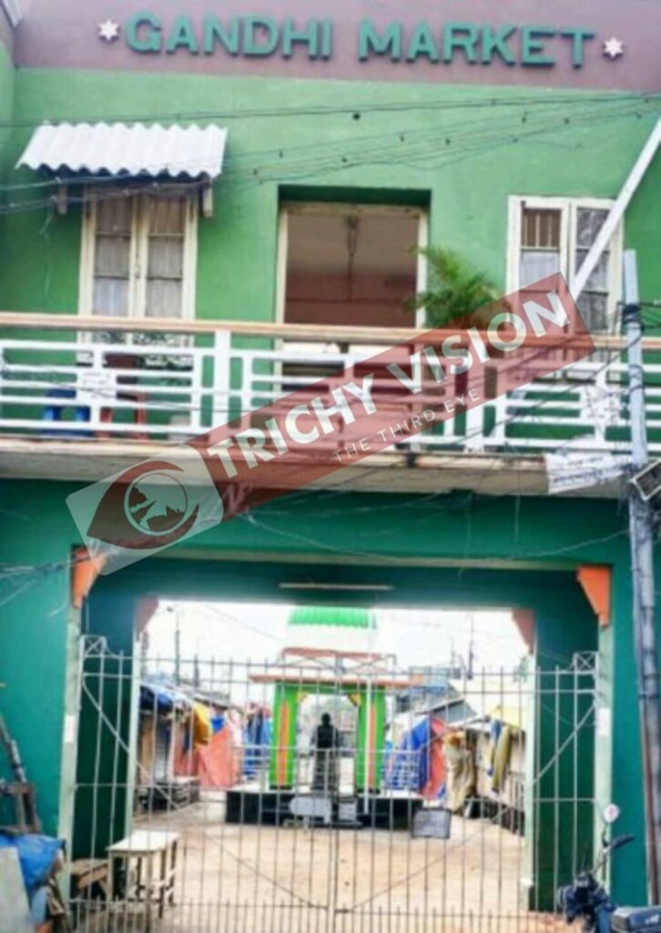 திருச்சி காந்தி மார்க்கெட்டில் காய்கறி, பழக்கடை, இறைச்சி என மொத்தம் மற்றும் சில்லரை வியாபாரம் என 1500க்கும் மேற்பட்ட கடைகள் செயல்பட்டு வருகின்றன. இந்நிலையில் கடந்த ஆண்டு கொரோனா தொற்று காரணமாக காந்தி மார்க்கெட் மூடப்பட்டு மதுரை மைதானம் மற்றும் ஜி கார்னர் மைதானத்தில் செயல்பட்டது. இதனைத் தொடர்ந்து கொரோனா கட்டுப்பாடுகள் தளர்த்தப்பட்ட பின் மீண்டும் காந்தி மார்க்கெட் செயல்பட தொடங்கியது.