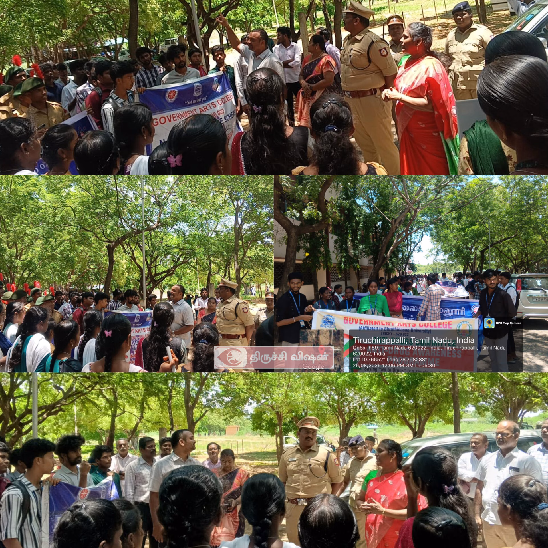போதைப் பொருள் பயன்பாட்டின் தீமைகளை மாணவர்கள் மற்றும் பொதுமக்கள் மத்தியில் விழிப்புணர்வாக்கும் நோக்கத்துடன் தமிழ்நாடு அரசு உயர் கல்வித் துறையின் வழிகாட்டுதலின்படி அரசு கலைக் கல்லூரி திருச்சி 22 போதை பொருள் தடுப்பு குழுவும் திருவெறும்பூர் உட்கோட்ட காவல் நிலையங்களும் இணைந்து போதைக்கு எதிரான விழிப்புணர்வு ஏற்படுத்துவதற்காக ஒரு சிறு பேரணியை 26.08.2025 செவ்வாய்க்கிழமை அன்று சிறப்பாக நடத்தினர்.