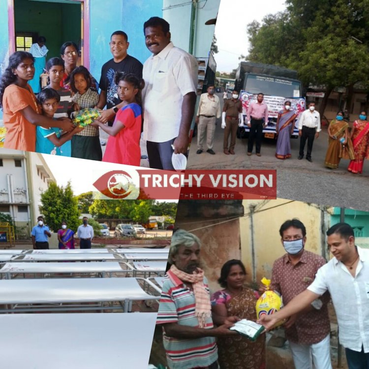 திருச்சி அரசு மருத்துவமனைக்கு தேவையான 50 கட்டில்கள், 50 குளுக்கோஸ் Iv ஸ்டாண்ட், 20 மருந்து வைக்கும் சிறிய பீரோக்கள், கொரானா வார்டில் உள்ளவர்களுக்கு உணவு தயாரிக்க தேவையான மளிகை சாமான்கள் உள்ளிட்ட 30 லட்சம் மதிப்பிலான பொருட்களை வழங்கியுள்ளோம். நோயாளிகளின் பயன்பாட்டிற்காக 20 சக்கர நாற்காலி வழங்கியுள்ளோம்.