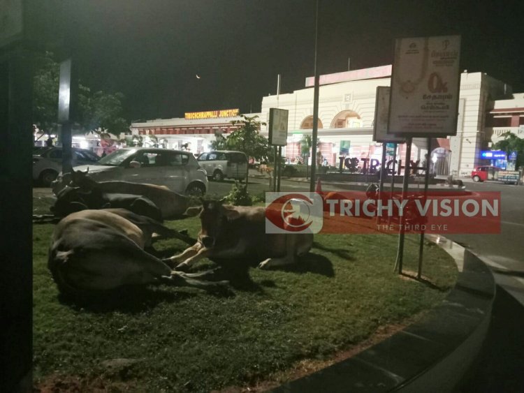கால்நடைகளின் கூடாரமாக மாறிவரும் திருச்சி ஜங்ஷன் ரயில் நிலையம்