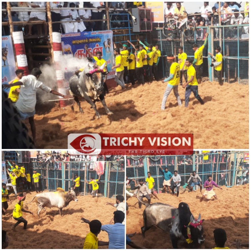 திருச்சி தெற்கு காட்டூர் சார்பில் மாநகராட்சி 39 வது வார்டுக்கு உட்பட்ட காட்டூர் பாலாஜி நகர் விரிவாக்க பகுதியியில் இன்று ஜல்லிக்கட்டு போட்டி தொடங்கியது. இந்த விழாவிற்கு லால்குடி ஆர்டிஒ வைத்தியநாதன் தலைமை வகித்து ஜல்லிகட்டு போட்டியை கொடி அசைத்து தொடங்கி வைத்தார். திருவெறும்பூர் தாசில்தார் ரமேஷ் முன்னிலையில் வகித்தார்.