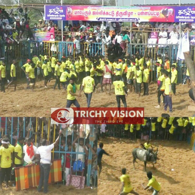 திருச்சி மணிகண்டம் பள்ளபட்டியில் ஜல்லிக்கட்டு – 750 காளைகள் பங்கேற்பு