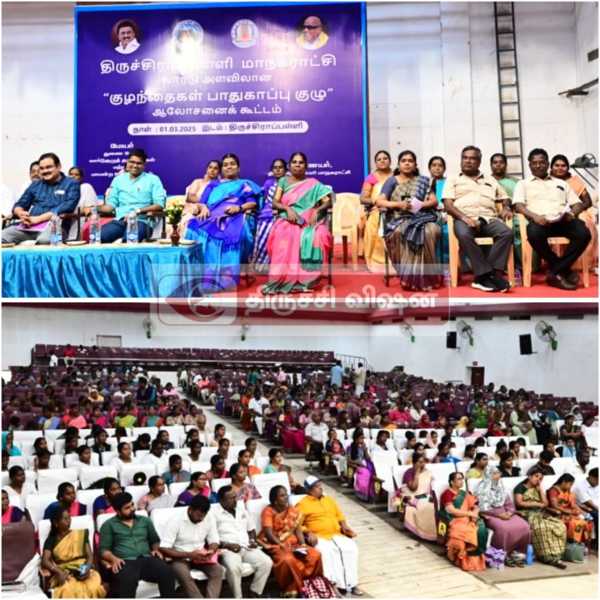 திருச்சி மாவட்ட ஆட்சித்தலைவர் பிரதீப் குமார் ,மாநகராட்சி ஆணையர் சரவணன், ஆகியோரின் உத்தரவின்படி, திருச்சி மாநகராட்சிக்கு உட்பட்ட 5 மண்டலங்களில் உள்ள அனைத்து வார்டுகளுக்கான குழந்தைகள் பாதுகாப்பு குழு கூட்டமானது தேவர் ஹால் மன்றத்தில் சிறப்பாக நடைபெற்றது .