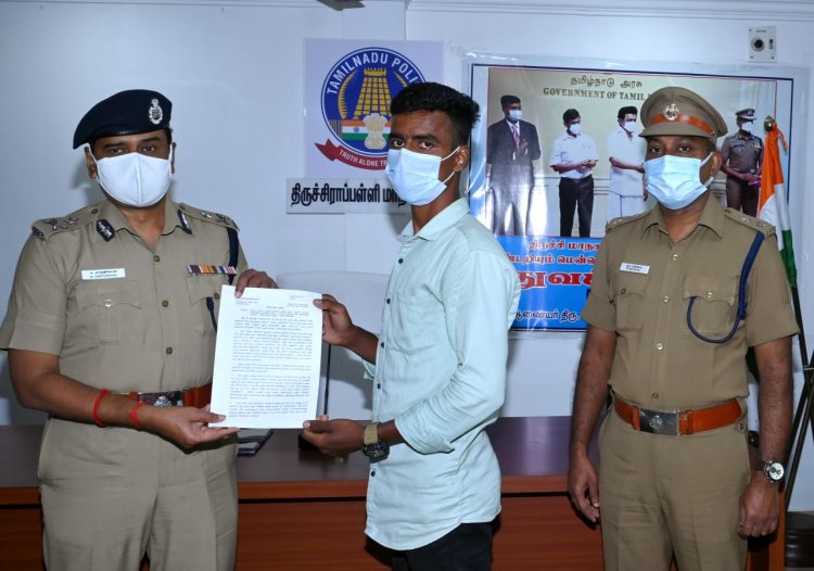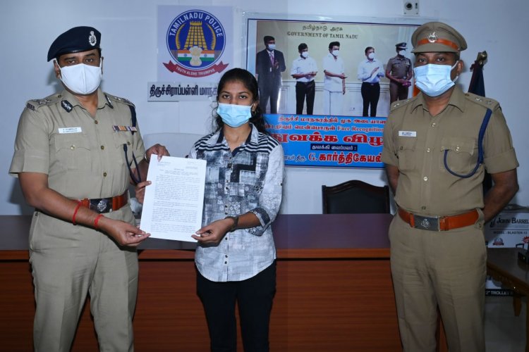 இன்று (08.03.22)-ஆம் தேதி திருச்சி மாநகர காவல் அலுவலகத்தில் வழங்கினார்.