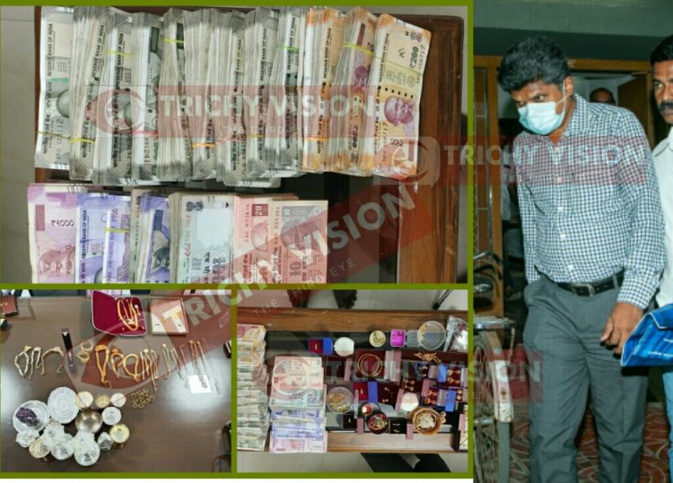 அதில் 160 சவரன் தங்க நகைகள், ஒரு கிலோ 250 கிராம் வெள்ளி நகைகளும் மற்றும் ஒரு கோடி மதிப்பிலான இரண்டு அடுக்குமாடி குடியிருப்புக்கான ஆவணங்களும் இருந்தது தெரியவந்தது. நகை மற்றும் குடியிருப்பு வாங்குவதற்கான எந்தவித உரிய ஆவணமும் இல்லாத நிலையில் இதுகுறித்து முன்னுக்குப் பின் முரணாண தகவல்களை கூறியுள்ளார். இதனை தொடர்ந்து ஊழல் தடுப்பு சட்டத்தின் கீழ் திருச்சி மாவட்ட தொழில் மைய பொது மேலாளர் ரவீந்திரன் மற்றும் பொறியாளர் கம்பன் மீதும் லஞ்ச ஒழிப்பு போலீசார் வழக்குப்பதிவு செய்துள்ளனர்.