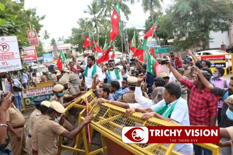 வேளாண் சட்டத்தை கண்டித்து திருச்சி பாஸ்போர்ட் அலுவலகம் முற்றுகை – 150க்கும் மேற்பட்டோர் கைது!!