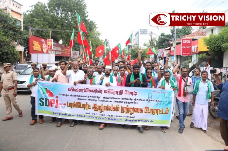 வேளாண் சட்டங்களை கண்டித்து SDPI கட்சியினர் திருச்சி பாஸ்போர்ட் அலுவலகத்தை முற்றுகையிட்டு போராட்டத்தில் ஈடுபட்டனர்.