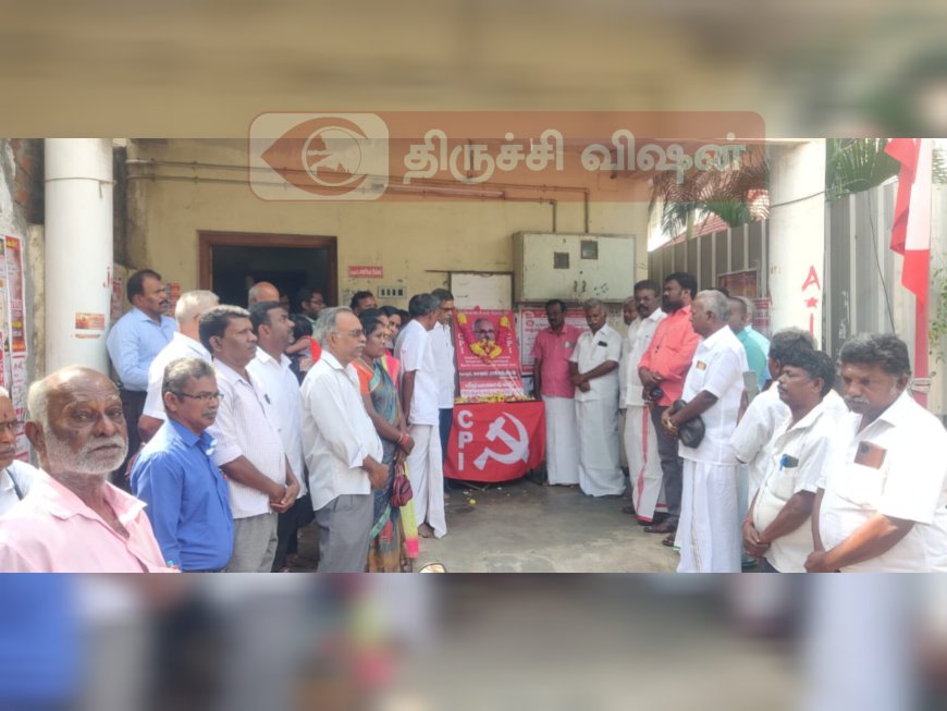 இந்தியக் கம்யூனிஸ்ட் கட்சியின் தேசிய செயலாளரும், கேரள மாநில செயலாளருமான தோழர் கானம் ராஜேந்திரன் நேற்று முன் தினம் இயற்கை எய்தினார். இதையடுத்து திருச்சி மாநகர் மாவட்டக் குழுவின் சார்பில் அஞ்சலி செலுத்தும் நிகழ்ச்சி மாவட்ட செயலாளர் எஸ்.சிவா தலைமையில் கட்சி அலுவலகத்தில் நடைபெற்றது.