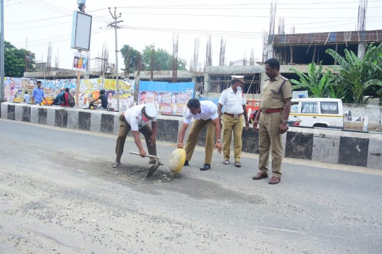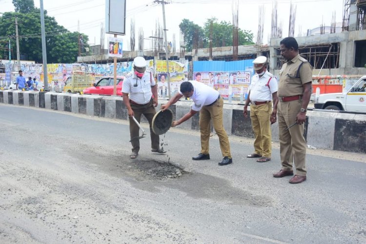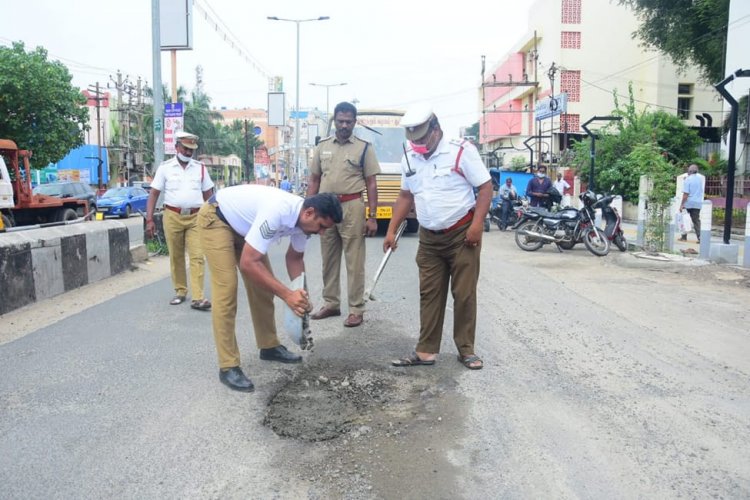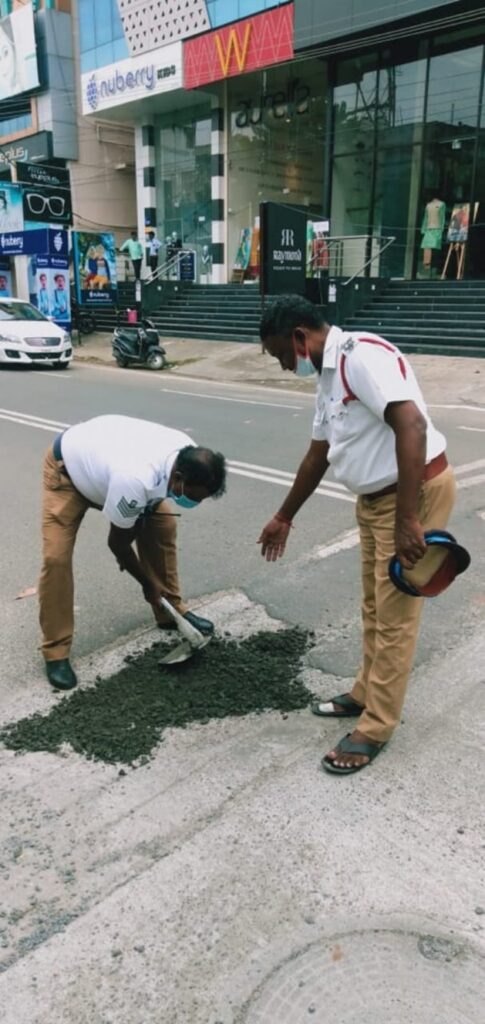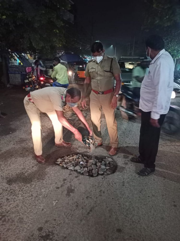 திருச்சி மாநகர காவல் ஆணையர் உத்தரவின்பேரில் மாநகர பகுதிகளில் குண்டும் குழியுமான சாலைகள் கண்டறியப்பட்டு, மாநகராட்சி ஊழியர்களுடன் சேர்ந்து கோட்டை காவல்நிலைய எல்லைக்குட்பட்ட சத்திரம் பேருந்து நிலைய சுற்று பகுதிகளிலும், அண்ணாசிலை ரவுண்டானா, W.B ரோடு உள்ளிட்ட சாலைகளிலும் மெயின்ரோட்டிலும் காந்திமார்க்கெட் தற்காலிகமாக காவல்நிலைய எல்லைக்குட்பட்ட வரகனேரி மண்களை கொட்டி சாலையை சீர்செய்து பொதுமக்கள் மோட்டார் வாகனங்களில் பாதுகாப்பாக பயணம் செய்ய வழிவகை செய்யப்பட்டுள்ளது.
