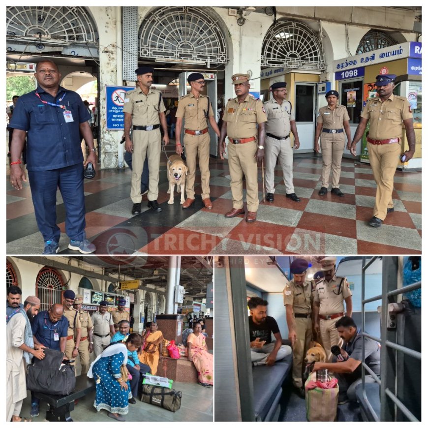 திருச்சி ரயில்வே பாதுகாப்பு படை முதுநிலை கோட்ட ஆணையர் அபிஷேக் மற்றும் உதவி ஆணையர் பிரமோத் நாயர் ஆகியோர்களது மேற்பார்வையில் திருச்சி RPF இன்ஸ்பெக்டர் K.P. செபாஸ்டியன் மற்றும் G.ரவிச்சந்திரன், SIPF/TPJ, K.மாசிலாமணி, ASIPF/TPJ தலைமையில் நடைபெற்ற சோதனையின் போது ரயில் நிலையம் மற்றும் வளாகம், பார்சல் அலுவலகம், காத்திருப்பு கூடம், ஸ்கேனர், விஐபி நுழைவு மற்றும் பயணிகள் உடைமைகள் சரிபார்க்கப்பட்டது.