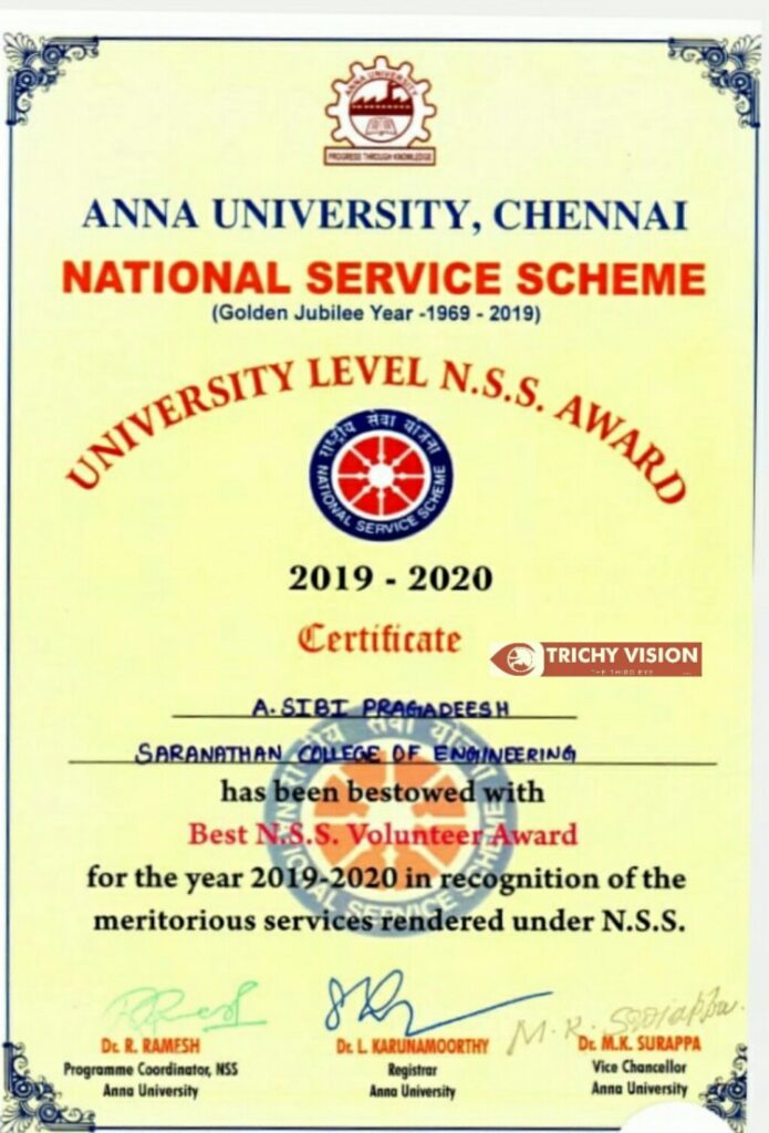 தேசத் தந்தை மகாத்மா காந்தியின் சீரிய நோக்கங்களில் ஒன்றான மாணவர் இயக்கங்களை தொடர்ந்து ஊக்குவித்து வரும் அண்ணா பல்கலைக்கழகம் 2019 – 2020 ஆம் ஆண்டிற்கான பல்கலைக்கழக அளவிலான நாட்டுநலப்பணி திட்ட விருதுகளை அறிவித்து சிறப்பு செய்துள்ளது. இவ்விருதிற்காக தமிழ்நாட்டில் உள்ள அண்ணா பல்கலைக்கழகத்தின் கீழ் செயல்பட்டு வரும் பல்வேறு பொறியியல் கல்லூரிகளில் இருந்து விண்ணப்பங்கள் பெறப்பட்டன.
