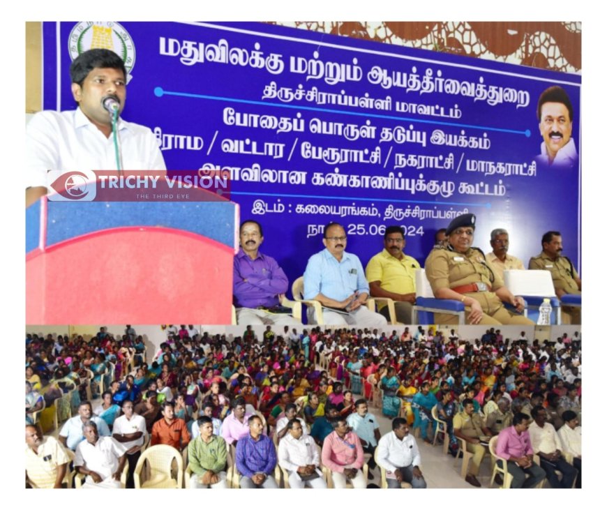 மதுவிலக்கு மற்றும் ஆயத்தாவைத்துறையின் சார்பில் போதைப் பொருள் தடுப்பு இயக்கத்தின் கண்காணிப்புக்குழுக் கூட்டம் திருச்சி கலையரங்கம் திருமண மண்டபத்தில் நடைபெற்றது.