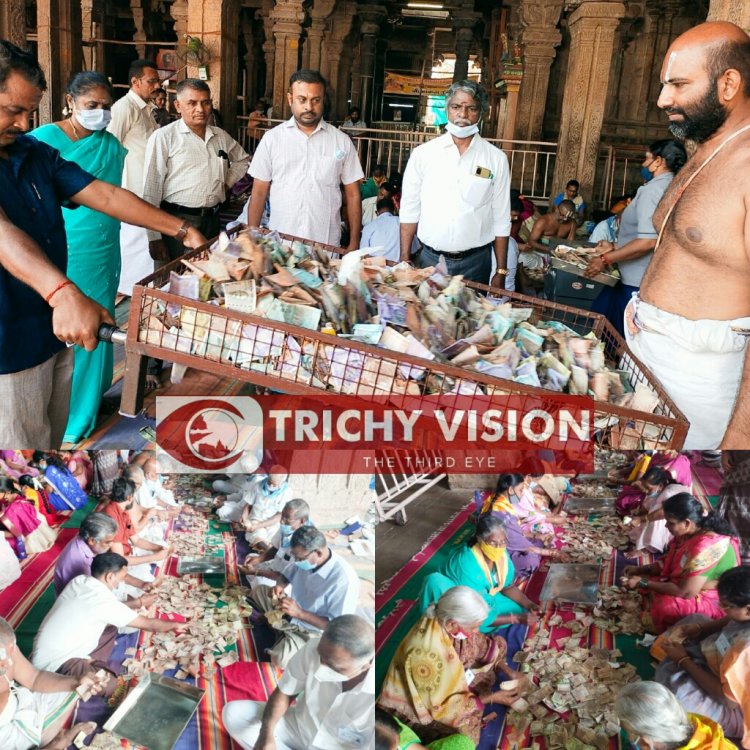 திருச்சி ஸ்ரீரங்கம் அருள்மிகு அரங்கநாதர் திருக்கோயில் இணை ஆணை செ.மாரிமுத்து முன்னிலையில் மாதாந்திர உண்டியல்கள் திறக்கப்பட்டு, உதவி ஆணையர்கள் கு.கந்தசாமி, செ.மாரியப்பன் மேற்பார்வையில் பக்தர்களின் காணிக்கைகள் எண்ணப்பட்டது.