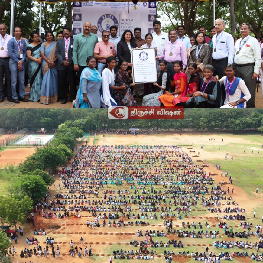திருச்சிராப்பள்ளி எஸ்.ஆர்.எம். கல்விக் குழுமங்களின் சார்பாக 2023ஆம் ஆண்டினை அர்த்தமுள்ளதாக மாற்றும் பொருட்டு எங்கள் திருச்சிராப்பள்ளி எஸ்.ஆர்.எம் அறிவியல் மற்றும் தொழில்நுட்பக் கல்லூரி (நிகர்நிலைப் பல்கலைக்கழகம்) வளாகத்தில் இன்று நவம்பர் (18-11-2023) உலகம் போற்றும் விதமாக உயர்ந்த இலட்சியத்துடன் மாபெரும் உலக சாதனை ஒன்றினைப் படைத்துள்ளோம். இந்த மாபெரும் உலக சாதனையை எலைட் உலக சாதனை (ELITE WORLD RECORDS) புத்தகம் அங்கீகரித்துள்ளது.