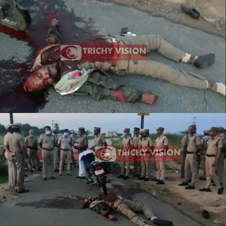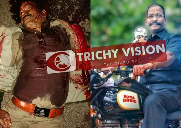 திருச்சி மாவட்டம், நவல்பட்டு சோழமாநகர் பகுதியில் வசித்து வந்தவர் பூமிநாதன்  இவருக்கு கவிதா என்ற மனைவியும், குகன் என்ற மகனும் உள்ளனர். பூமிநாதன் நவல்பட்டு காவல் நிலையத்தில் சிறப்பு உதவி ஆய்வாளராகப் பணியாற்றி வந்துள்ளார். இவர் வழக்கம்போல் நேற்று இரவு ரோந்து பணியில் இருந்தபோது சிறப்பு காவல் உதவி ஆய்வாளர் பூமிநாதன் நவல்பட்டு ரோட்டில் நள்ளிரவு 2 மணி அளவில் மூன்று இரு சக்கர வாகனங்களில் ஆடுகளுடன் வந்த நபர்களை தடுத்து நிறுத்தியுள்ளார். அப்போது அவர்கள் இருசக்கர வாகனத்தை நிறுத்தாமல் வேகமாக சென்றுள்ளனர். ஆடுகளை திருடும் கும்பலை சேர்ந்தவர்கள் என்பதை தெரிந்துகொண்ட சிறப்பு காவல் உதவி ஆய்வாளர் பூமிநாதன் இருசக்கர வாகனத்தில் விரட்டி சென்றுள்ளார்.
