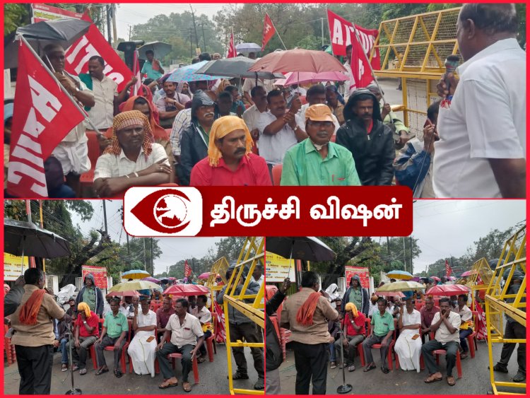 சம்மேளன திருச்சி மண்டல தலைவர் நேருதுரை, பொதுச் செயலாளர் சுப்பிரமணியன் திருச்சி மாவட்ட ஏஐடியுசி பொதுச் செயலாளர் க.சுரேஷ், தலைவர் வே. நடராஜா உள்ளிட்டோர் விளக்க உரையாற்றினர். ஆர்ப்பாட்டத்தில் கொட்டும் மழையும் பொருட்படுத்தாது நூற்றுக்கணக்கான தொழிலாளர்கள் கோஷமிட்டு பங்கேற்றனர்.