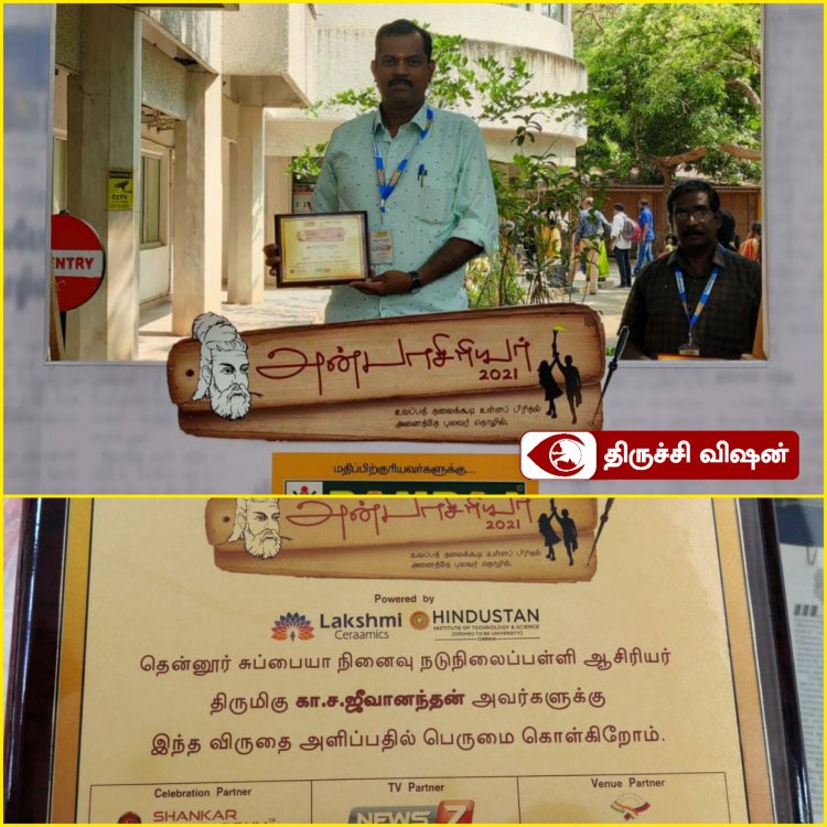 இதில் திருச்சி மாவட்டம் சார்பில் சுப்பையா நினைவு நடுநிலைப்பள்ளி தலைமையாசிரியர் கே.எஸ். ஜீவானந்தன் அன்பாசிரியர் விருது பெற்றுள்ளார்.இதுகுறித்து அவர் பேசுகையில், இந்த விருதானது மனதிற்கு மிகுந்த மகிழ்ச்சி அளிக்கிறது.தொடர்ந்து ஊக்கத்தோடு செயல்படுவதற்கு விருது ஊக்க சக்தியாக அமையும்,இந்த விருதில் என் பள்ளி ஆசிரியர்களுக்கும் மாணவர்களுக்கும் அதிக பங்கு உண்டு என்றார்.