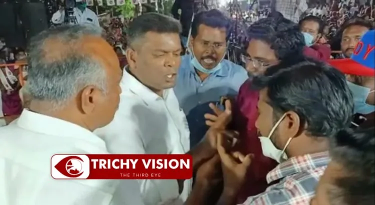 அங்கே செய்தி சேகரிக்க வந்த செய்தியாளர்கள் அமர இருக்கைகள் வழங்கப்படவில்லை. நீண்ட நேரம் நின்ற பிறகு அவர்களே இருக்கைகளை எடுத்து ஓரமாக போட்டு அமர்ந்தனர். அப்பொழுது நிர்வாகி ஒருவர் வந்து அங்கிருந்து எழுந்து செல்லுமாறு அவர் கூறினார் .அப்போது செய்தியாளர்களுக்கு எங்கு இடம் ஒதுக்கப்பட்டுள்ளது என்று நிர்வாகியிடம் கேள்வி எழுப்பினர் .அவர் அந்த இடத்தை காண்பிக்கும் போது அந்த இருக்கைகளை எல்லாம் எடுத்து நீங்களே வந்து உட்கார்ந்து கொள்ளுங்கள் என்று மீண்டும் அவ மரியாதையுடன் நடத்தினார். இதனால் செய்தியாளர்களுக்கும் மநீம நிர்வாகிக்கும் இடையே வாக்குவாதம் ஏற்பட்டது. அப்போது மக்கள் நீதி மையத்தின் ஐடி விங்க் பணிபுரியக்கூடிய பெண் ஒருவர் வந்து சமாதானப்படுத்திய முற்பட்ட பொழுது அவரை கோபமுடன் திட்டி நிர்வாகி அனுப்பினார் .இதனால் மேலும் பரபரப்பு ஏற்பட்டது. பொதுவாக திருவெறும்பூர் தொகுதி வேட்பாளராக போட்டியிடும் முருகானந்தம் பல நிகழ்வுகளில் செய்தியாளர்களை அவமரியாதை செய்ததும் செய்திகளுக்கான எந்தவித தகவல்களையும் முறையாக கொடுப்பதில்லை.அவரிடம் விளக்கம் கேட்க முற்பட்டால் அதற்க்கும் முன்பே உரிய முன்அனுமதி பெற்று தகவலை பெற வேண்டும் என பதிலும் வந்துள்ளது.
