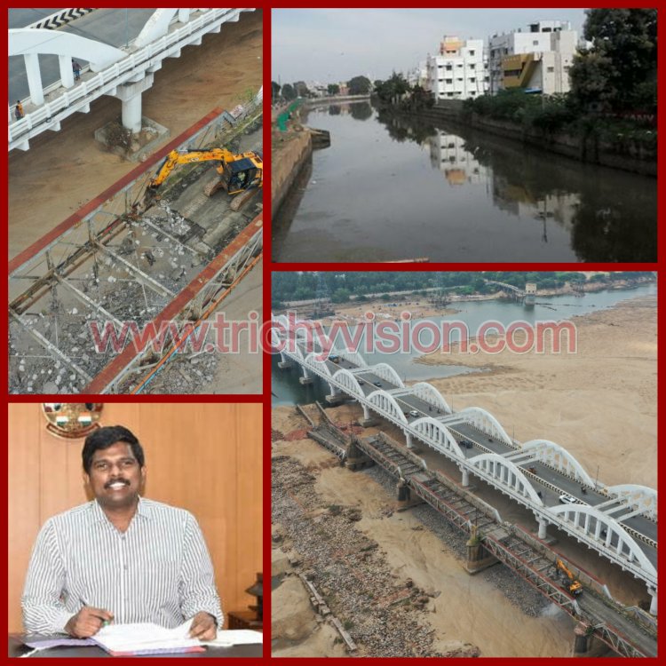 திருச்சி நம்பர் 1 டோல்கேட் அருகே கொள்ளிடம் ஆற்றில் வெள்ளப்பெருக்கு ஏற்பட்ட பொழுது கடந்த 2018 ஆம் ஆண்டு உடைந்த பழைய இரும்பு பாலத்தின் 18,19 வது தூண் வெள்ளநீரில் அடித்துச் செல்லப்பட்டது.இந்நிலையில்  17வது தூண் கடந்த ஆகஸ்ட் ல் (9.8.2022)  விழுந்தது.