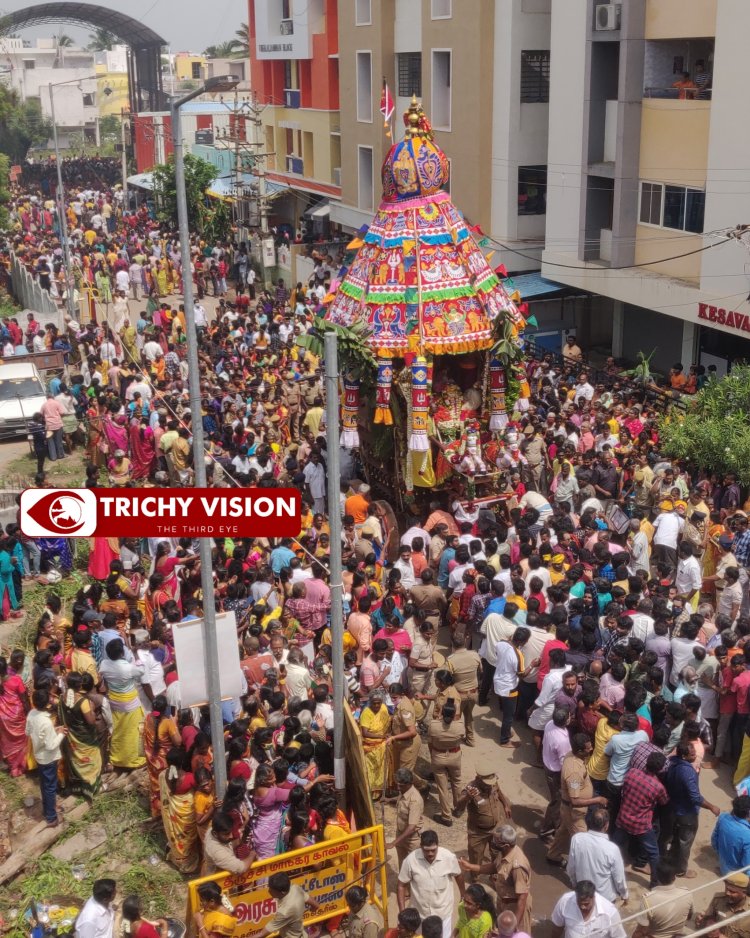 மேலும், முக்கிய வீதிகள் வழியாக சென்ற திருத்தேர் மதியம் நிலையை வந்து அடைந்தது. முன்னதாக திருச்சி, பெரம்பலூர், அரியலூர், புதுக்கோட்டை உள்ளிட்ட பல்வேறு மாவட்டங்களைச் சேர்ந்த பெண் பக்தர்கள் தீச்சட்டி ஏந்தியும், அழகு குத்தி வந்து அம்மனை வழிபட்டனர்.