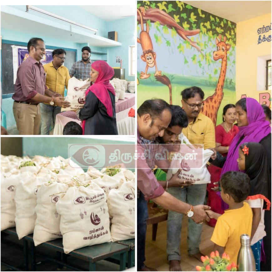 ஏழை எளிய மக்களும் கூடுதல் மகிழ்ச்சியோடு கொண்டாடிட உதவி வருகிறது திருச்சி விஷன் அறக்கட்டளை.திருச்சி விஷன் அறக்கட்டளை சார்பில் ரம்ஜான் பண்டிகையை முன்னிட்டு ஏழை எளிய மக்களுக்கு இலவச ரம்ஜான் பரிசுத்தொகுப்பு வழங்கப்பட்டது. கணவனால் கைவிடப்பட்ட பெண்கள், கணவனை இழந்த பெண்கள், மாற்றுத்திறனாளிகள், தினக்கூலி பெண்கள் என 50 குடும்பங்களுக்கு ரம்ஜான் பரிசு தொகுப்பு தொகுப்பு வழங்கப்பட்டது.