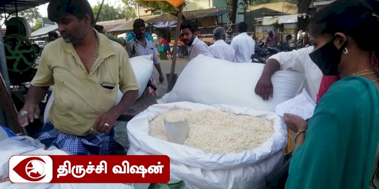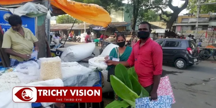 திருச்சியின் முக்கிய பகுதிகளான காந்தி மார்க்கெட், பெரியகடைவீதி, சிந்தாமணி, இ.பி ரோடு, தென்னூர் சாலை ஆகிய பகுதிகளில் மக்கள் பூஜைக்காக தேங்காய் பூ பழங்கள் வாழைக் கன்றுகள் மற்றும் பொரி ஆகியவற்றை வாங்கி செல்வதற்காக ஏராளமான பொதுமக்கள் குவிந்தனர்.