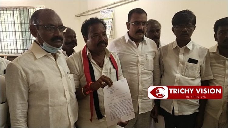 இதையடுத்து திருச்சி மேற்கு தொகுதியில் அதிமுக சார்பில் போட்டியிடும் வேட்பாளர் பத்மநாதன் மாவட்ட ஆட்சியர் அலுவலகத்திற்கு வந்து மாவட்ட வருவாய் அதிகாரியிடம் காவல்நிலையத்தில் காவலர்களுக்கு கவர் கொடுத்த விவகாரத்தில் நேருவை கைது செய்ய வேண்டும். அவரை வேட்பாளரிலிருந்து தகுதி நீக்கம் செய்து நடவடிக்கை எடுக்க வலியுறுத்தி புகார் மனுவை அளித்தார் .