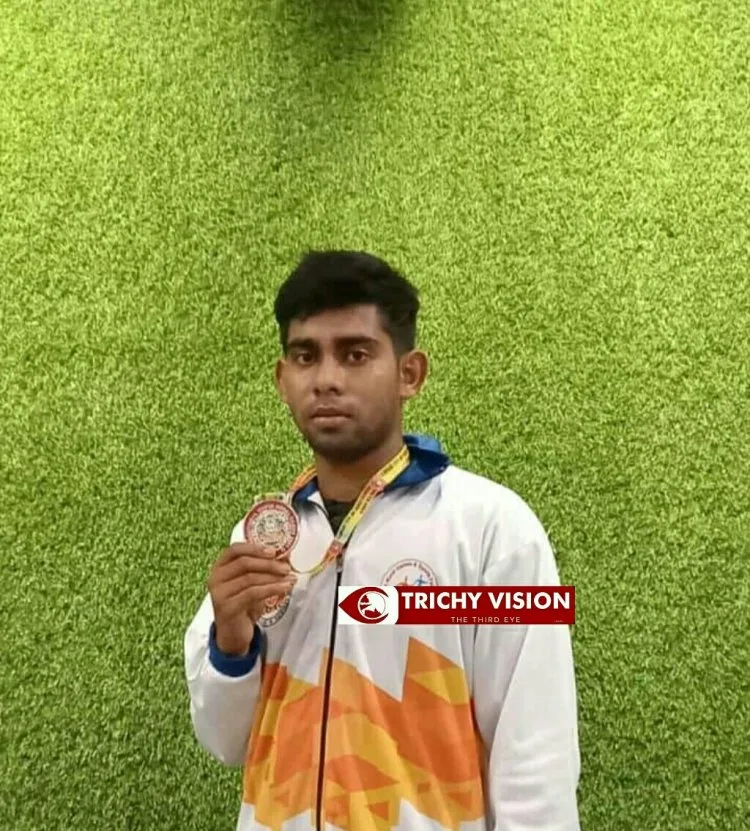 தெற்காசிய விளையாட்டுப் போட்டி தடகளத்தில் வெள்ளி பதக்கம் வென்ற திருச்சி இளைஞர்