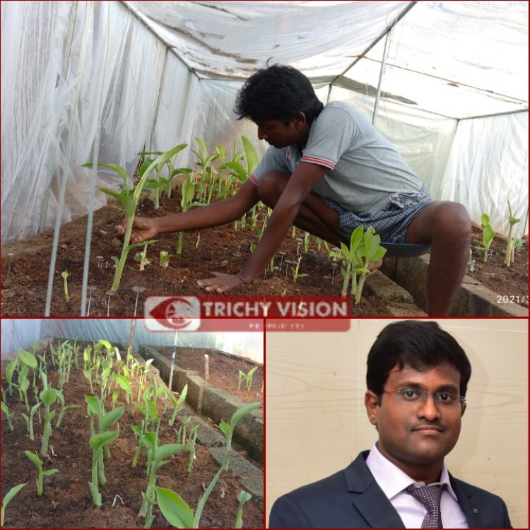 விவசாயத்தில் நாள்தோறும் பல்வேறு வளர்ச்சி அடைந்துவரும் நிலையில் தற்போது திருச்சிராப்பள்ளி ஸ்ரீரங்கத்தில் போதாவூரை சேர்ந்த ஒண்டிமுத்து என்ற பட்டதாரி இளைஞர் தன்னுடைய சொந்த நிலத்தில் நவீ னதொழில்நுட்பத்தைக்கொண்டு வாழை உற்பத்தி செய்து இருக்கிறார்.
