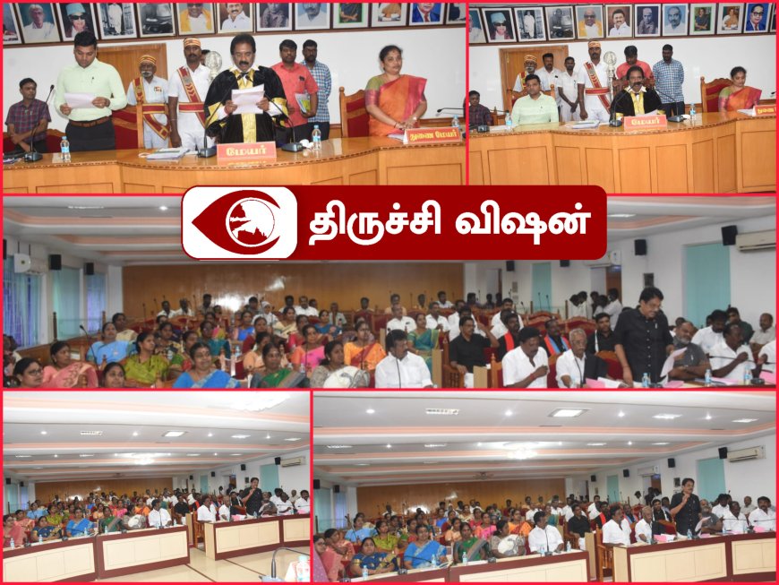 மணிப்பூர் சம்பவத்திற்கு கண்டனம் தெரிவிக்கும் வகையில், இந்திய கம்யூனிஸ்ட் கட்சி, மார்க்சிஸ்ட் கம்யூனிஸ்ட் கட்சி, காங்கிரஸ் மற்றும் விடுதலை சிறுத்தைகள் கட்சியை சேர்ந்த திருச்சி மாநகராட்சி மாமன்ற உறுப்பினர்கள் மாமன்ற கூட்டம் தொடங்குவதற்கு முன்பாக மாநகராட்சி அலுவலக நுழைவாயில் பகுதியில்