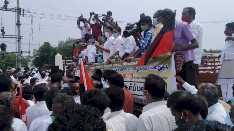 எனவே இதனை கண்டித்து திருவெறும்பூர் சட்டமன்ற தொகுதி உறுப்பினர் அன்பில் மகேஷ் பொய்யமொழி தலைமையில் காங்கிரஸ், கம்யூனிஸ்ட் கட்சி மற்றும் பலர் அரியமங்கலம் பகுதியில் கலந்து கொண்டனர்.
