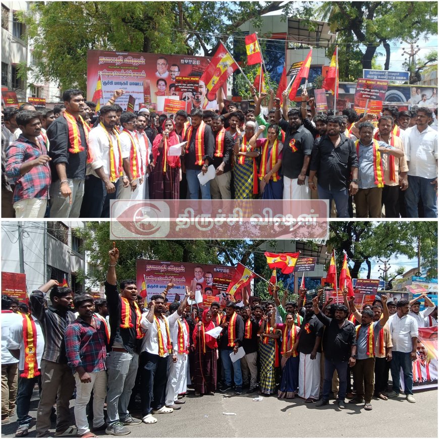 வெற்றி கழகம் சார்பில் மாவட்ட தலைநகரங்களில் போராட்டம் நடத்த அறிவுறுத்தி இருந்தது அதன்படி திருச்சி மாநகர் மாவட்டம் மாவட்டச் செயலாளர் சந்திரா தலைமையில் திருச்சி மாவட்ட ஆட்சியர் அலுவலகம் அருகே கண்டன ஆர்ப்பாட்டம் நடைபெற்றது.