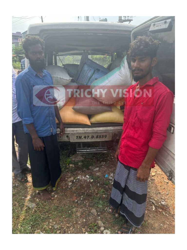 இதனை அடுத்து இருவரையும் கைது செய்த போலீசார் அரிசி மற்றும் காரை பறிமுதல் செய்தனர், மேலும் இவர்கள் மீது வழக்கு பதிவு செய்து நீதிமன்ற காவலுக்கு அனுப்பி நீதிமன்ற உத்தரவுபடி திருச்சி மத்தியா சிறையில் அடைத்தனர்.