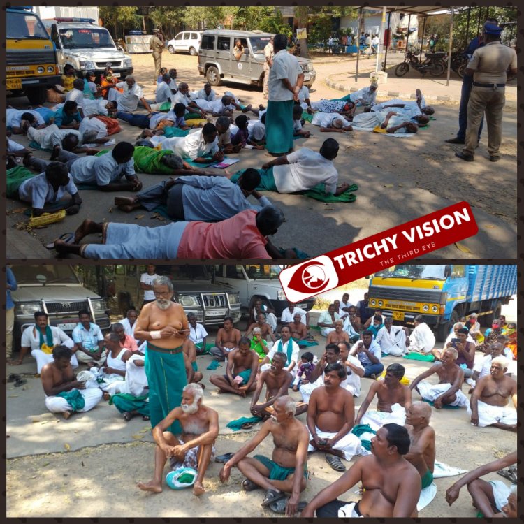 இதற்கிடையில் மேல் சட்டை இல்லாமல் அரை நிர்வாணமாக அமர்ந்து 50-க்கும் மேற்பட்ட விவசாயிகள் திடீரென பிஎஸ்என்எல் அலுவலக வளாகத்தில் தரையில் படுத்து போராட்டத்தில் ஈடுபட்டனர்.