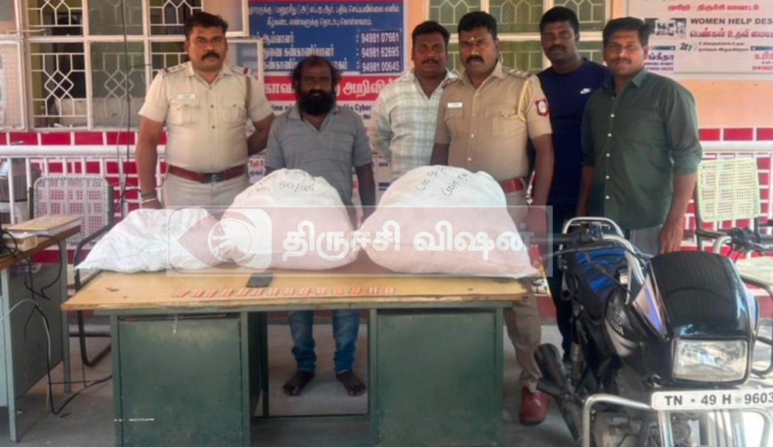 அப்போது பைக்கில் வந்த ஒருவரை தடுத்து நிறுத்தி போலீசார் விசாரணை மேற்கொண்டனர். அவர் முன்னுக்கு பின் முரணாக பேசியதை எடுத்து அவரது வாகனத்தை சோதனை இட்டபோது வாகனத்தில் தமிழக அரசால் தடை செய்யப்பட்ட போதை புகையிலை மற்றும் போதை மாத்திரைகள் கண்டுபிடிக்கப்பட்டது. மேலும் விசாரணையில் பிடிபட்டவர் திருச்சி லால்குடி அருகே பூவாளூர் பகுதியைச் சேர்ந்த மருது என்பவரின் மகன் கனகராஜ் என்பது தெரியவந்தது. இதையடுத்து அவரை போலீசார் கைது செய்தனர். மேலும் முசிறி அழகாப்பட்டி பனந்தோப்பு பகுதியைச் சேர்ந்த மகேஷ் என்பவரிடமிருந்து தடை செய்யப்பட்ட போதை புகையிலை கைப்பற்றப்பட்டது. இதையடுத்து கனகராஜ் மற்றும் மகேஷ் இருவரையும் போலீசார் கைது செய்து வழக்குப்பதிந்து விசாரணை செய்தனர்.