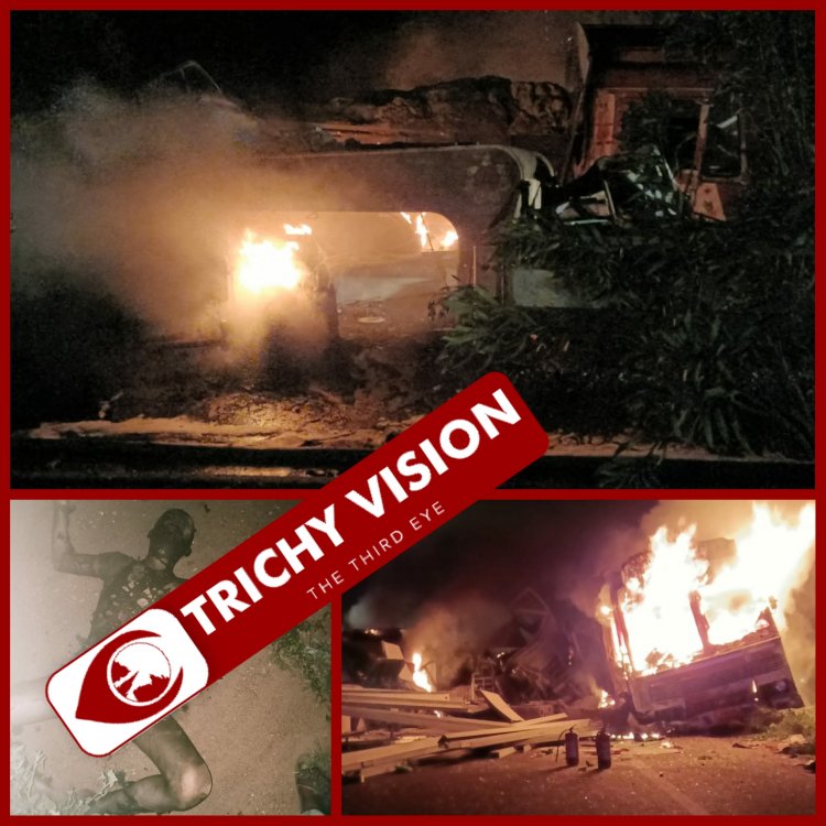 மணப்பாறை அருகே லாரிகள் மோதல் தீயில் கருகிய இருவர்