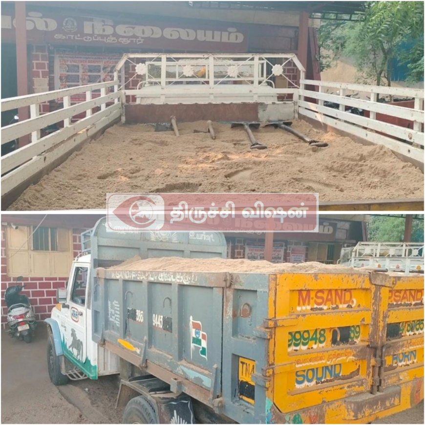திருச்சி அருகே நள்ளிரவில் மணல் கடத்தி சென்ற இரு வாகனங்கள் பறிமுதல் – மணல் திருடர்கள் வாகனங்களை நிறுத்தி தப்பி ஓட்டம்.