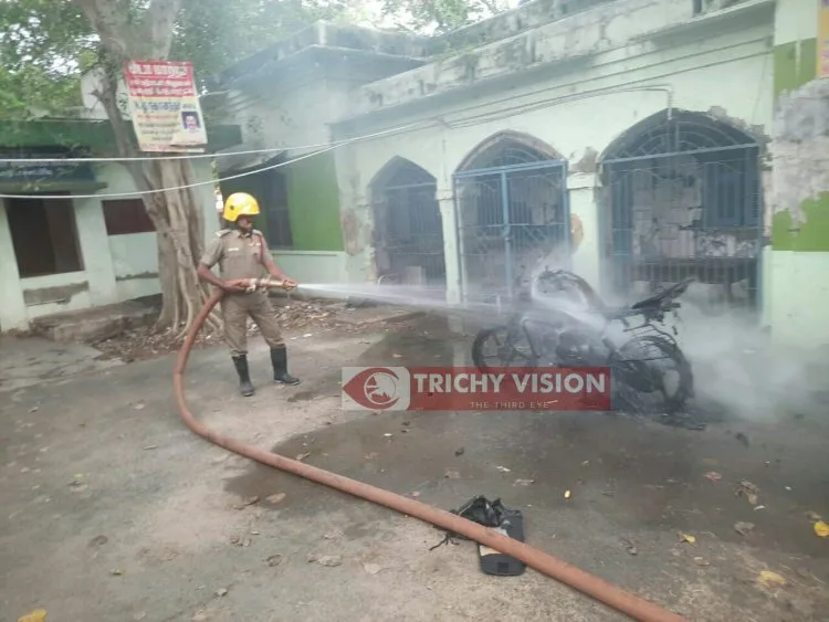 நிலைய அலுவலர் போக்குவரத்து சுரேஷ், சிறப்பு நிலைய அலுவலர் பிரபு மற்றும் வீரர்கள் சுரேஷ் அருண்பாண்டியன், விஜய் அமிர்தராஜ், விஜய் மற்றும் பலர் சம்பவ இடத்திற்கு விரைந்து வந்து இருசக்கர வாகனத்தில் பற்றி எரிந்த தீயை அணைத்தனர். பின்னர் தீ விபத்து குறித்து லால்குடி போலீசார் விசாரணை செய்து வருகின்றனர்.