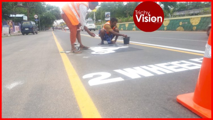 தமிழகத்தில் முதன் முறையாக திருச்சி மாநகரில் விபத்துகளைக் குறைக்க சோதனை அடிப்படையில் இருசக்கர வாகனங்களுக்குத் தனி வழி அமைக்கப்பட்டு வருகிறது.