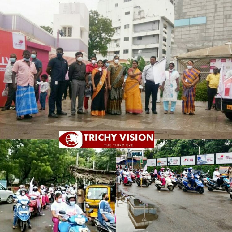 பெண்களுக்கு எதிரான வன்முறையை அகற்றுவதற்கான சர்வதேச தினத்தை முன்னிட்டு திருச்சி காவேரி மருத்துவமனை சார்பில் இருசக்கர வாகன விழிப்புணர்வு பேரணி நடைபெற்றது.