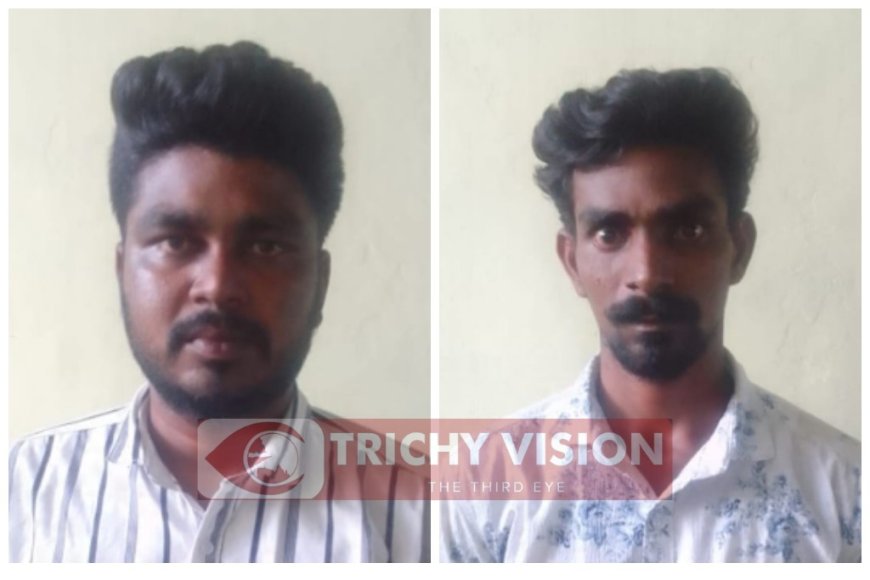 திருச்சி மாவட்டம் முசிறி அருகே தொட்டியம் பகுதியில் கஞ்சா விற்கப்படுவதாக போலீசருக்கு கிடைத்த தகவலின் பேரில் தொட்டியம் காவல் ஆய்வாளர் (பொறுப்பு) கதிரேசன் தலைமையில் போலீசார் தீவிர சோதனையில் ஈடுபட்டனர். அப்போது தொட்டியம் கோட்டைமேடு புளிய மரத்தடி பகுதியில் சந்தேகத்திற்கு இடமான வகையில் நின்று கொண்டிருந்த இளைஞர்கள் இருவரை போலீசார் மடக்கி பிடித்து விசாரித்தனர்.