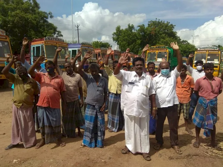 கொரோனா வைரஸ் பாதிப்பால் லாரிகள் அதிகளவில் ஓடாத நிலையில் லாரி உரிமையாளர் மற்றும் ஓட்டுனர்களின் வாழ்வாதாரத்தை பாதுகாக்க வலியுறுத்தியும், போக்குவரத்து காவல்துறையினர் பொய்யான வழக்குகளை லாரி ஓட்டுனர்கள் மீது பதிவு செய்வதை தடுக்க வேண்டும், பழைய வாகனங்கள் ரத்து செய்வதை கண்டித்தும் திருச்சி மாவட்டத்தில் உள்ள லாரி உரிமையாளர் சங்கத்தினர் ஒரு நாள் அடையாள வேலை நிறுத்தத்தில் ஈடுபட்டுள்ளனர்.