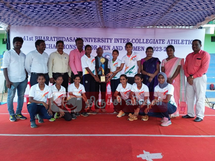 பாரதிதாசன் பல்கலைக்கழக அளவிலான மாணவியர்க்கான 41 ஆவது தடகளப் போட்டிகள் திருச்சிராப்பள்ளி அண்ணா விளையாட்டு அரங்கில் நடைபெற்றது. திருச்சி, பெரம்பலூர், அரியலூர், கரூர், தஞ்சாவூர், நாகப்பட்டினம், திருவாரூர், புதுக்கோட்டை ஆகிய எட்டு மாவட்டங்களில் உள்ள 67 கல்லூரிகளில் பயிலும் 900ம் மேற்பட்ட மாணவியர் இத்தடகளப் போட்டிகளில் கலந்து கொண்டனர். திருச்சி பிஷப் ஹீபர் மற்றும் ஹோலி கிராஸ் கல்லூரிகள் இணைந்து நடத்திய இப்போட்டியில் திருச்சிராப்பள்ளி தேசியக் கல்லூரி மாணவியர் 6 தங்கம், 7 வெள்ளி, 3 வெண்கலப் பதக்கங்களுடன் வெற்றி பெற்று சாம்பியன் பட்டம் வென்றனர். சிறந்த தடகள வீராங்கனையாகத் தேசியக் கல்லூரியைச் சார்ந்த அட்சயாஸ்ரீ தேர்ந்தெடுக்கப்பட்டார்