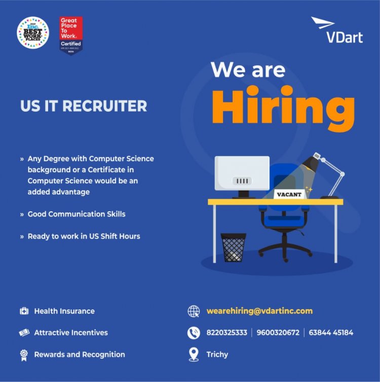 அமெரிக்காவை தலைமையிடமாக கொண்டு செயல்படும் V-Dart நிறுவனம் கணினி அறிவியல் படித்த பட்டதாரிகளுக்கு வேலைவாய்ப்புகளை அறிவித்துள்ளது.