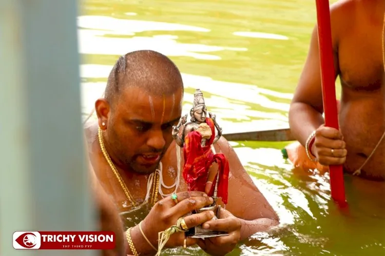 இதனையொட்டி நம்பெருமாள் மூலஸ்தானத்திலிருந்து தங்கபல்லக்கில் புறப்பட்டு பரமபதவாசல் வழியாக, சந்திரபுஷ்கரணி குளத்தை வந்தடைந்தார். அதன் பின்னர் அங்கு தீர்த்தவாரி கண்டருளினார். பெருமாள் தீர்த்தவாரி கண்டருளியதை தொடர்ந்து அங்கு கூடி இருந்த பக்தர்கள் புனிதநீரை தெளித்துக்கொண்டு பக்தி பரவசமடைந்தனர். வைகுண்ட ஏகாதசி பெருவிழா நாளை அதிகாலை நம்மாழ்வார் மோட்சத்துடன் நிறைவு பெறுகிறது.