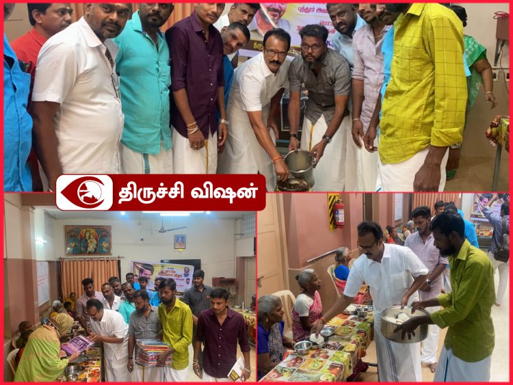 நடிகர் விஜய் நடித்த வாரிசு திரைப்படம் உலகம் முழுவதும் இன்று வெளியானது. திருச்சியில் திருச்சி மாவட்ட விஜய் ரசிகர்கள் சார்பில் வாரிசு பொங்கல் வைத்து முதியோர் இல்லத்தில் முதியோர்களுக்கு புடவை மற்றும் நலத்திட்ட உதவிகளும் காலை உணவு வழங்கி கொண்டாடினார்கள்.