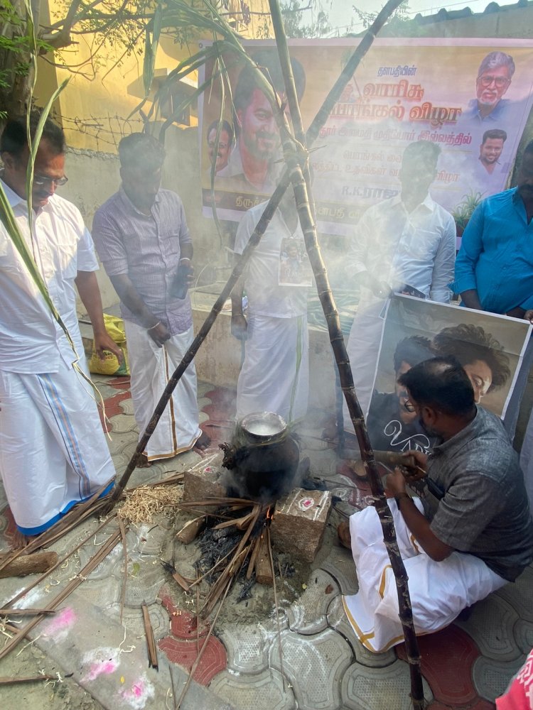 கடந்த ஆண்டு பீஸ்ட் திரைப்படம் வெளியானபோது மாற்றுத்திறனாளிகள் திரையரங்கில் முதல் காட்சி பார்ப்பதற்கான ஏற்பாடு செய்திருந்தோம். வாரிசு திரைப்படம் வெளியாவதை ஒட்டி இன்றைக்கு திருச்சியில் உள்ள புத்தூர் அமைதி நிலையத்தில் 60க்கும் மேற்பட்ட முதியவர்களோடு இணைந்து வாரிசு பொங்கல் கொண்டாடப்பட்டது என்றார்.