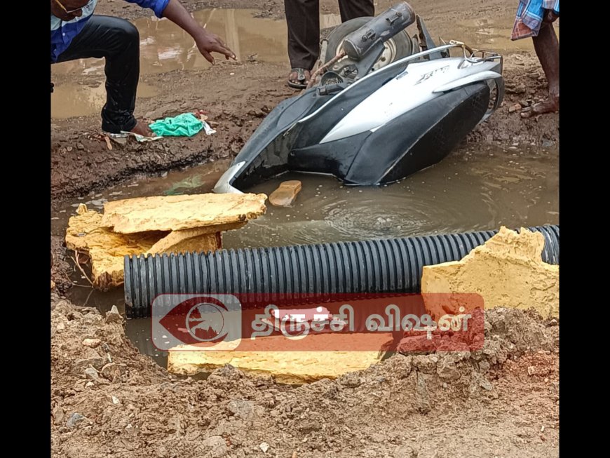 திருச்சி தென்னூர், அருகே உள்ள வீரமாமுனிவர் தெரு முனையில் சாலை மற்றும் பாதாள சாக்கடை பணிக்காக தோண்டப்பட்ட பள்ளத்தில் வாகன ஓட்டி ஒருவர் தடுமாறி விழுந்து விட்டார். உடனடியாக அக்கம் பக்கத்தினர் அவரையும், வாகனத்தையும் மீட்டனர்.