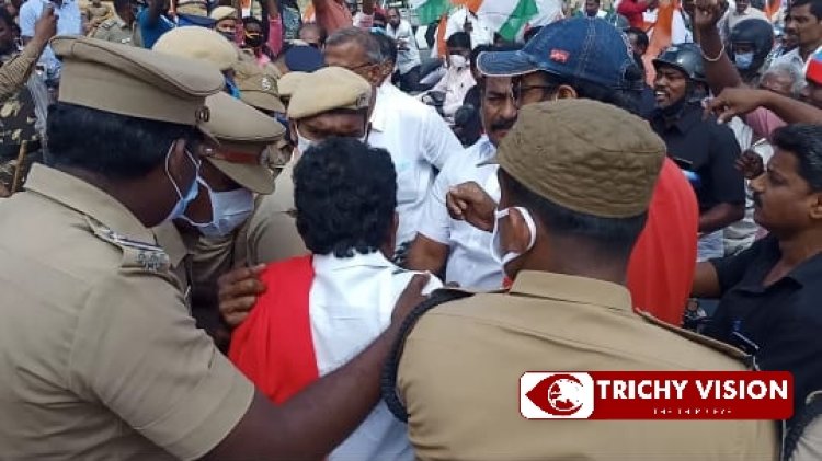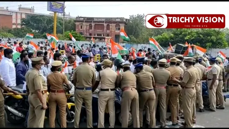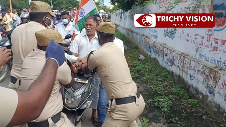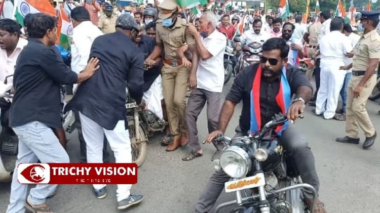 குடியரசு தின விழா தினத்தில் டெல்லியில் நடைபெறும் விவசாயிகளின் டிராக்டர் பேரணிக்கு ஆதரவாக திருச்சி எம்ஜிஆர் சிலை முன்னதாக ஏஐடியுசி( aituc intuc citu) சிஐடியு மற்றும் விவசாய அமைப்புகள் இருசக்கர வாகனத்தில் தேசியக் கொடியை ஏந்தி திருச்சி மத்திய பேருந்து நிலையம் வரை பேரணி நடத்த இருந்தனர். காவல்துறையினர் அதிகமானோர் பாதுகாப்பு பணியில் குவிக்கப்பட்டனர்.