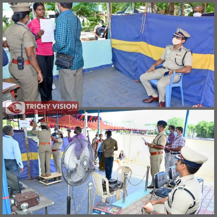 தமிழ்நாடு சீருடை பணியாளர் தேர்வு குழுமத்தால் 2020-ஆம் ஆண்டிற்கான இரண்டாம்நிலைக் காவலர், சிறைக்காவலர் மற்றும் தீயணைப்பாளர் காலியிடங்களுக்கான எழுத்து தேர்வு கடந்த 13.12.2020 அன்று நடைபெற்றது. எழுத்து தேர்வில் வெற்றி பெற்ற அனைவருக்கும் அடுத்தகட்டமாக சான்றிதழ் சரிப்பார்த்தல் மற்றும் உடற்தகுதி தேர்வு 26.07.2021-ந் தேதி முதல் 04.08.2021-ந் தேதி வரை திருச்சி, சுப்பிரமணியபுரத்தில் உள்ள மாவட்ட ஆயுதப்படை மைதானத்தில் நடைப்பெற்றது.